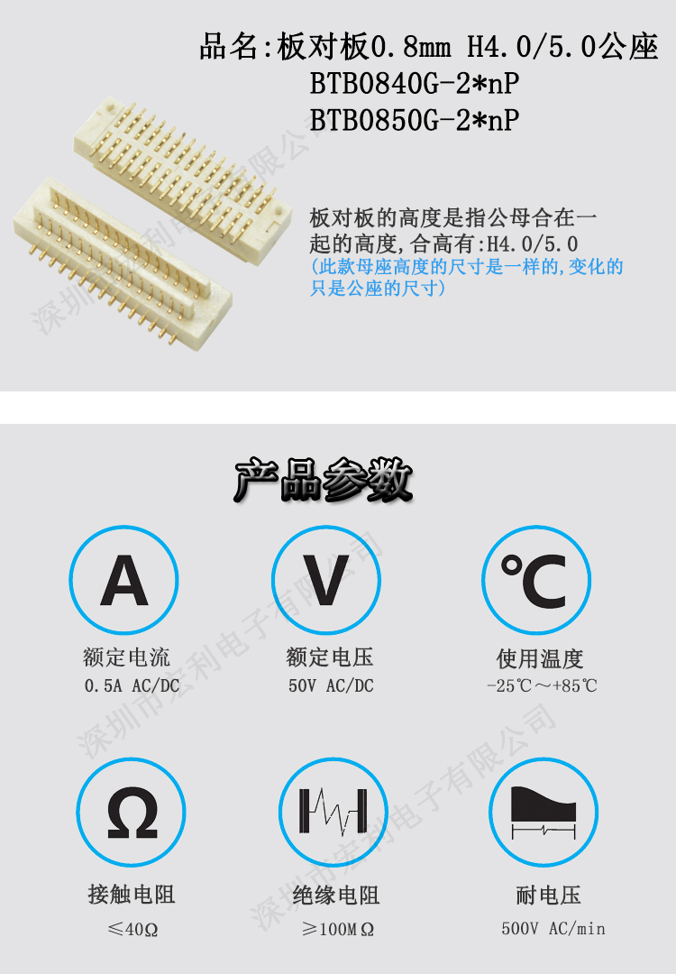 HL板對板連接器 間距0.8MM 20P H4.0 H5.0 公座連接器接插件